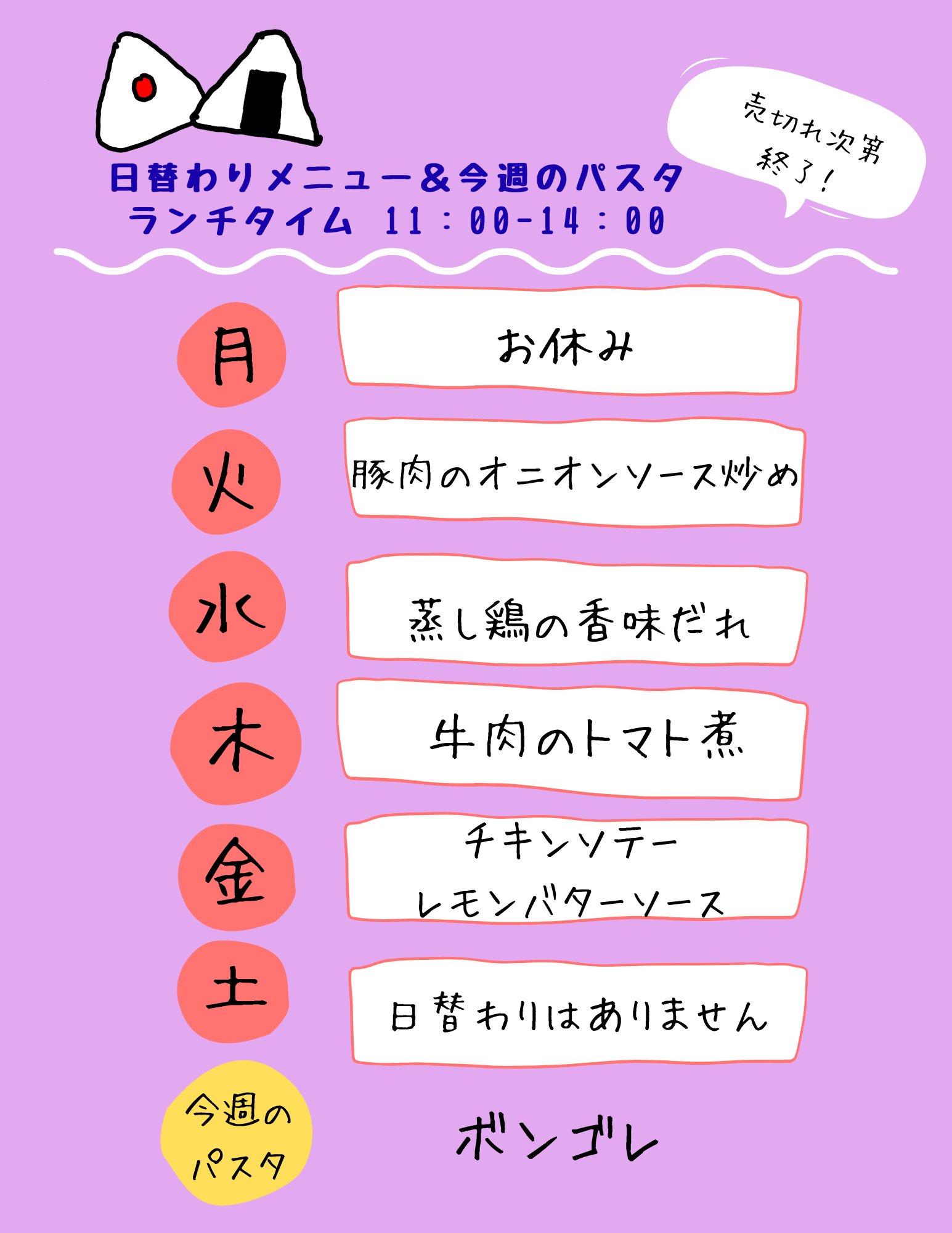 10/13-10/18の日替わりメニュー