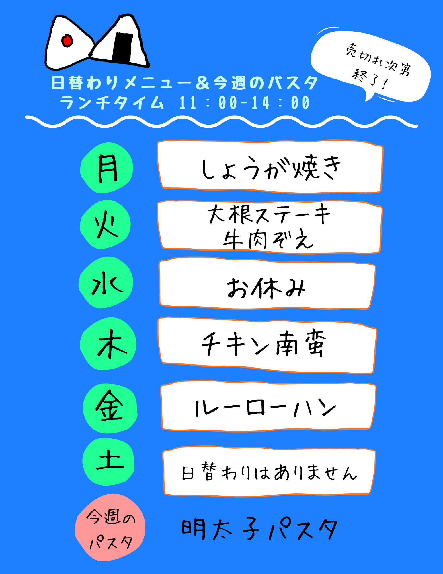 メニューは曜日替わりで4種類から選べますので、お腹いっぱいで幸せいっぱいです♪