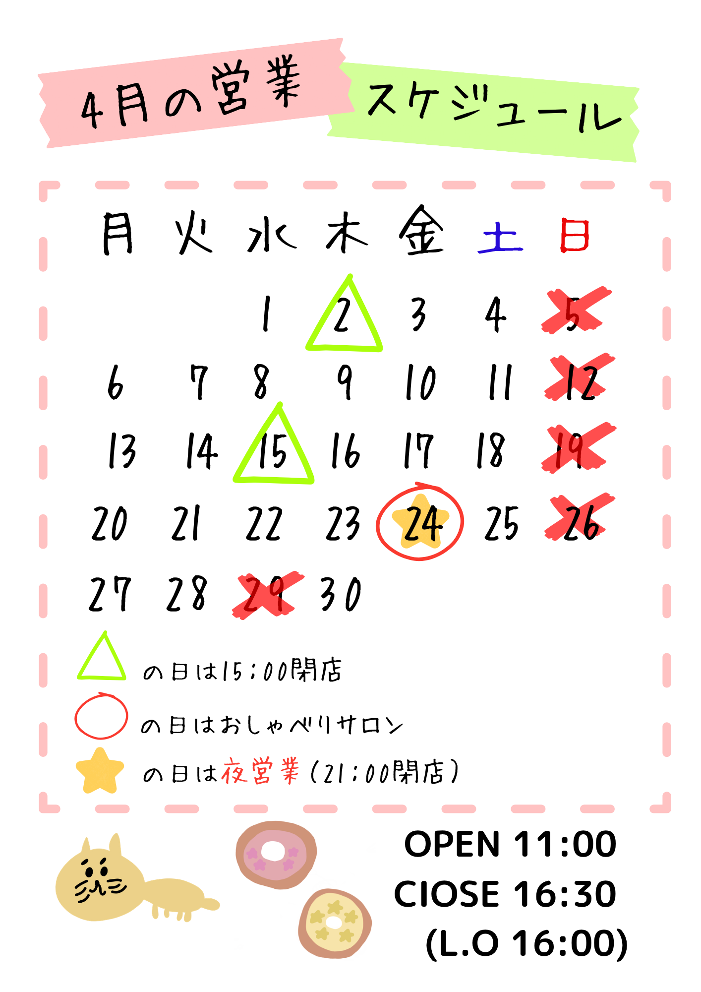 4月の営業スケジュール