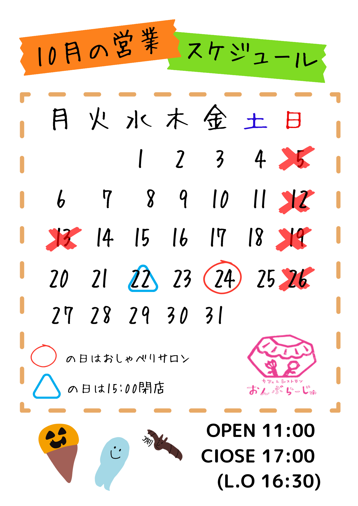 10月の営業スケジュールです。