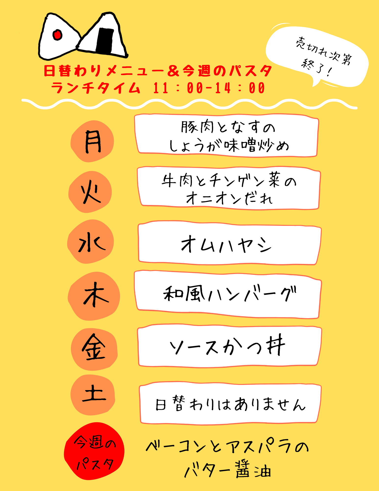 メニューは曜日替わりで4種類から選べますので、お腹いっぱいで幸せいっぱいです♪