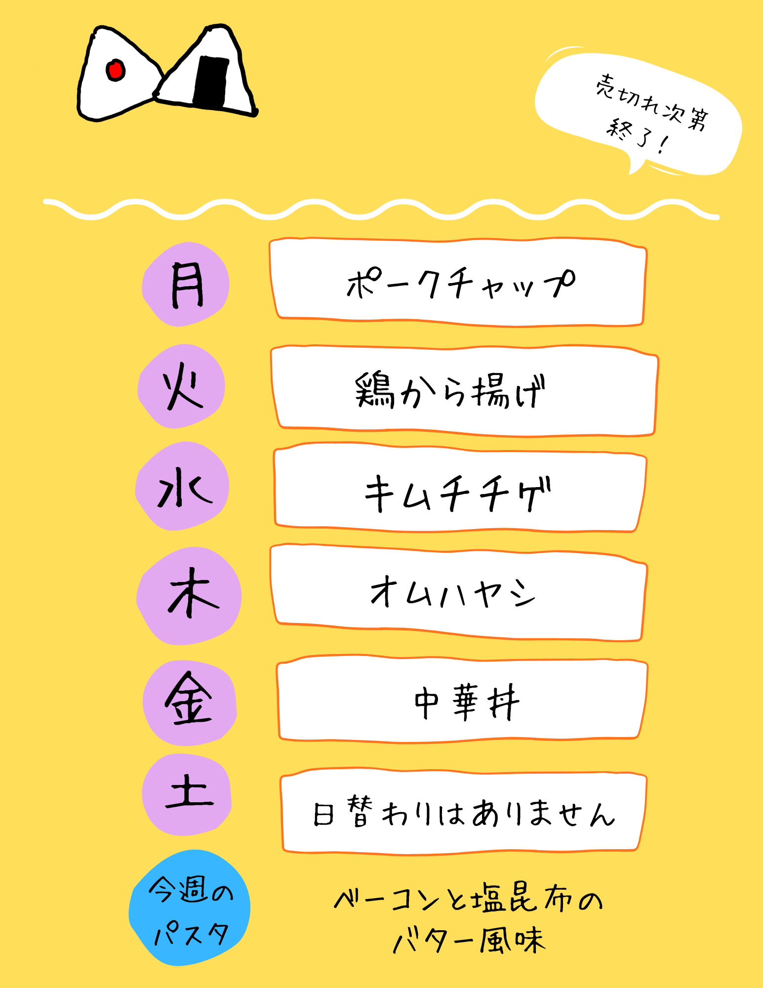 12/15~12/20の日替わりメニュー