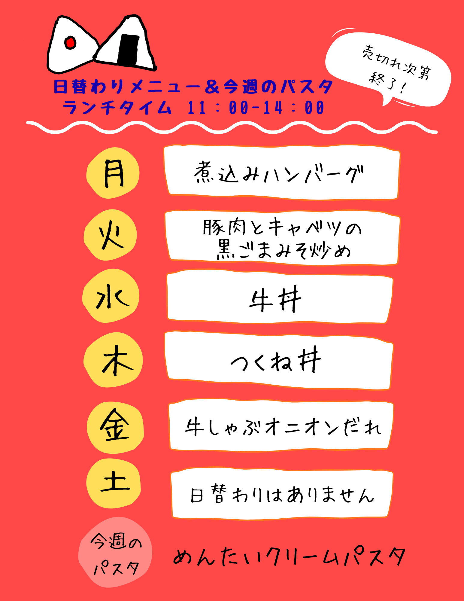 メニューは曜日替わりで4種類から選べますので、お腹いっぱいで幸せいっぱいです♪